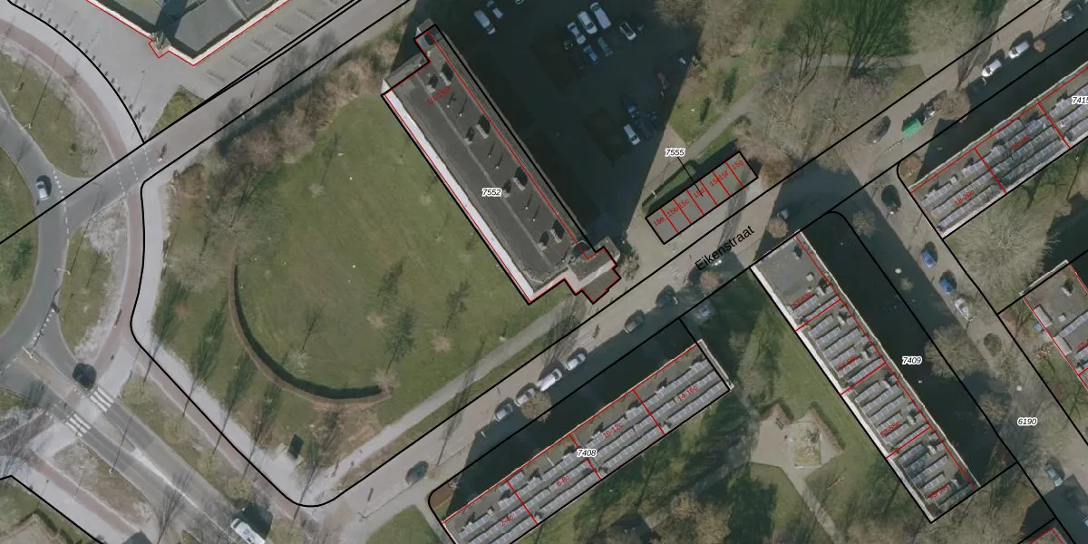 Eikenstraat 9-9 is gelegen op kadastraal perceel LWD00F7552. Deze kadastrale aanduiding is uniek en wordt gebruikt door het Kadaster om eigendomsrechten en andere zakelijke rechten vast te leggen. Het perceel maakt onderdeel uit van de kadastrale gemeente Leeuwarden.