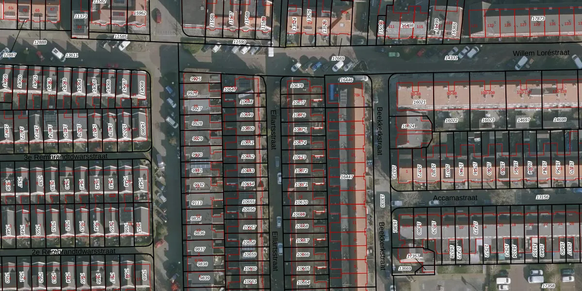 Gebruik de zoekbalk of klik op een perceel voor informatie over de adressen binnen dit perceel.