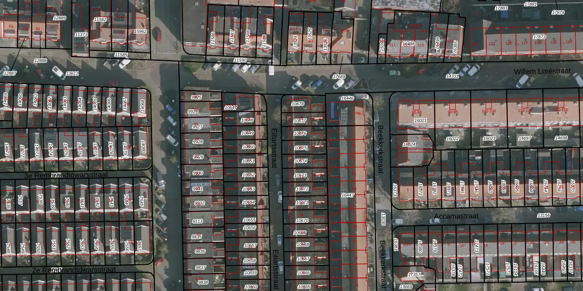 Gebruik de zoekbalk of klik op een perceel voor informatie over de adressen binnen dit perceel.
