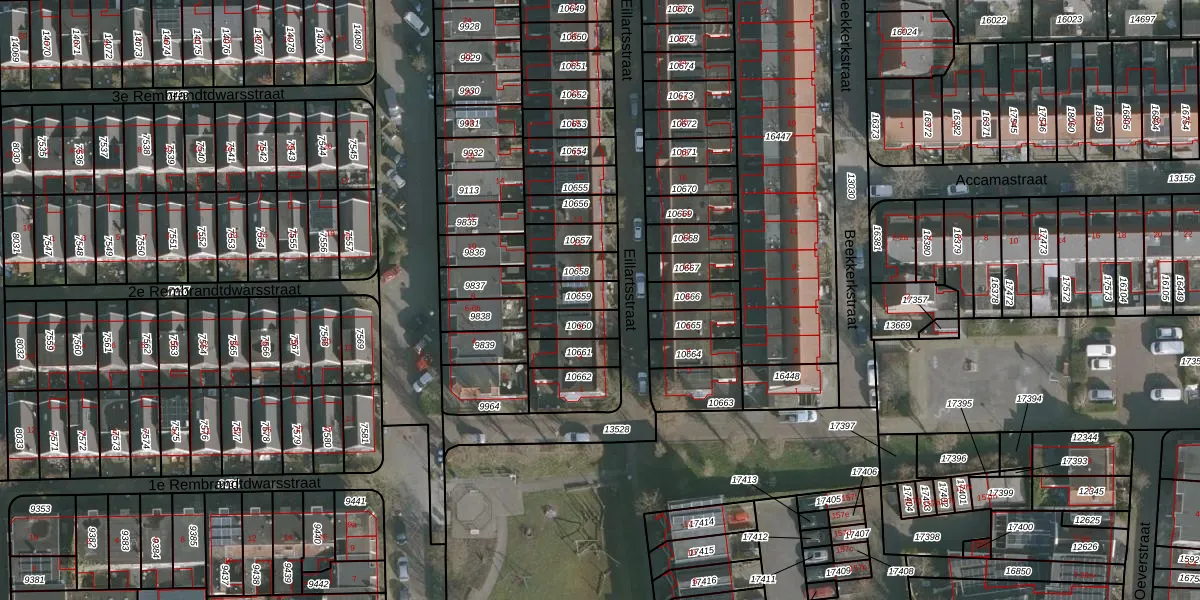 Gebruik de zoekbalk of klik op een perceel voor informatie over de adressen binnen dit perceel.