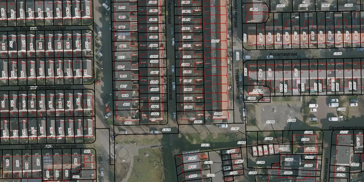 Gebruik de zoekbalk of klik op een perceel voor informatie over de adressen binnen dit perceel.