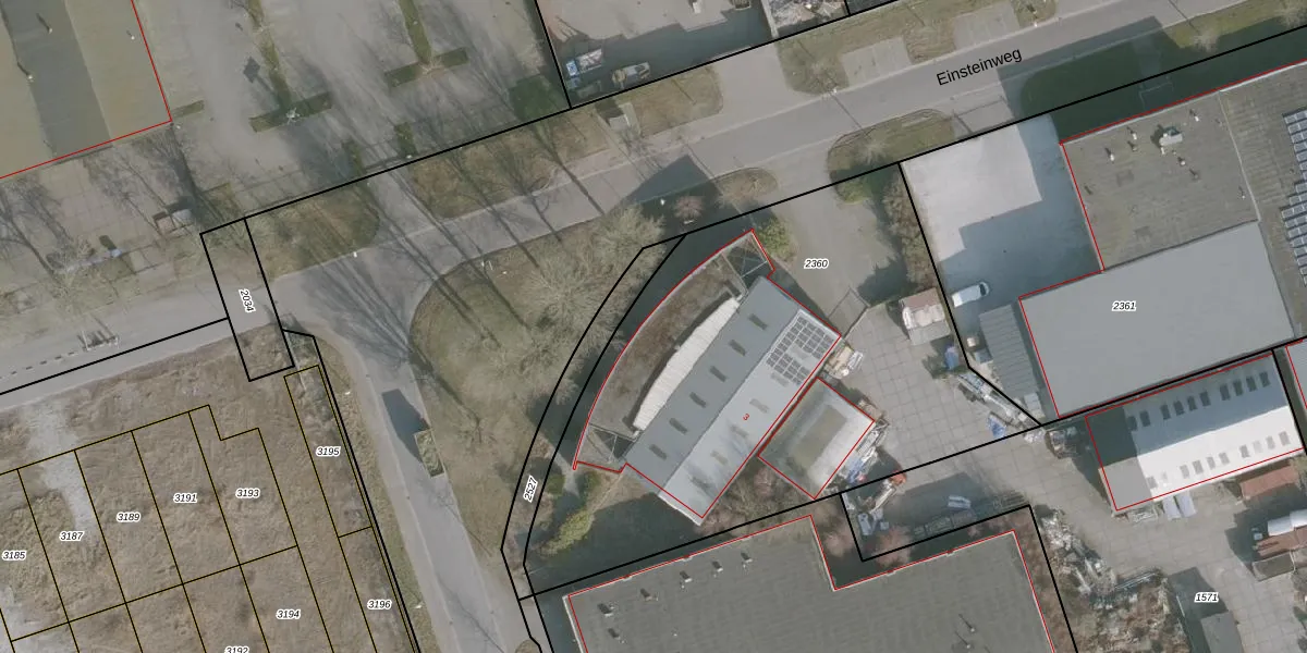 Het perceel waarop Einsteinweg 3 staat heeft een oppervlakte van 2742 m². Dit is een zeer groot perceel. De perceeloppervlakte wordt geregistreerd door het Kadaster. Gedetailleerde informatie over de maten van dit perceel kunt u vinden in het rapport Kadastrale kaart met maatvoering van Einsteinweg 3.