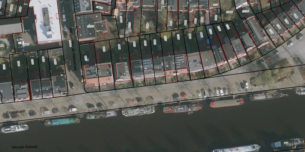 Het perceel waarop Emmakade 23 staat heeft een oppervlakte van 231 m². Dit is een middelgroot perceel. De perceeloppervlakte wordt geregistreerd door het Kadaster. Gedetailleerde informatie over de maten van dit perceel kunt u vinden in het rapport Kadastrale kaart met maatvoering van Emmakade 23.