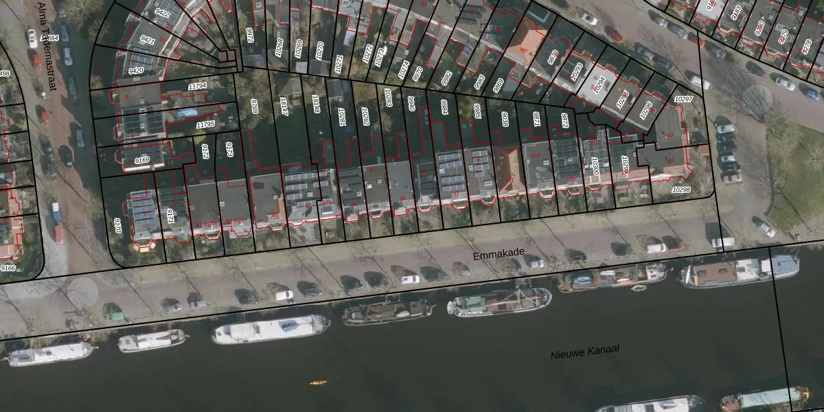 Het perceel waarop Emmakade 93 staat heeft een oppervlakte van 217 m². Dit is een middelgroot perceel. De perceeloppervlakte wordt geregistreerd door het Kadaster. Gedetailleerde informatie over de maten van dit perceel kunt u vinden in het rapport Kadastrale kaart met maatvoering van Emmakade 93.