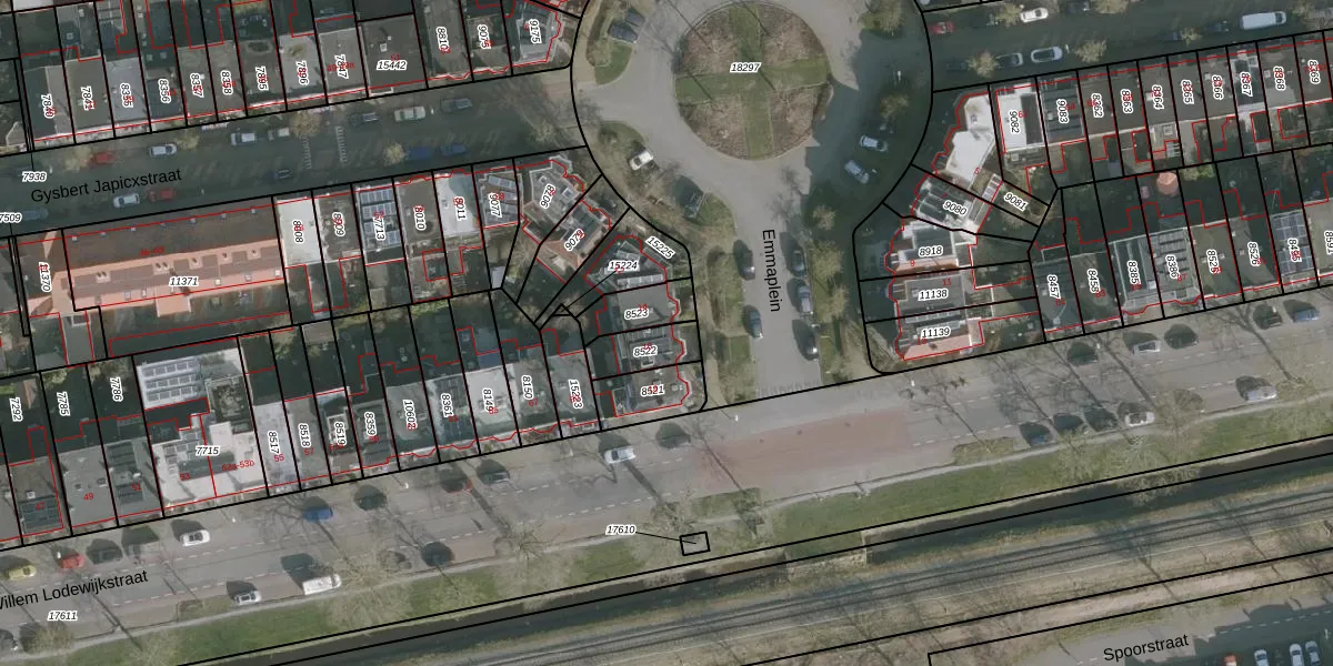 Het perceel waarop Emmaplein 16 staat heeft een oppervlakte van 106 m². Dit is een middelgroot perceel. De perceeloppervlakte wordt geregistreerd door het Kadaster. Gedetailleerde informatie over de maten van dit perceel kunt u vinden in het rapport Kadastrale kaart met maatvoering van Emmaplein 16.