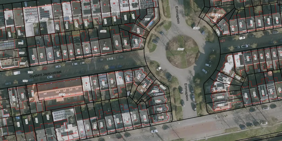Gebruik de zoekbalk of klik op een perceel voor informatie over de adressen binnen dit perceel.