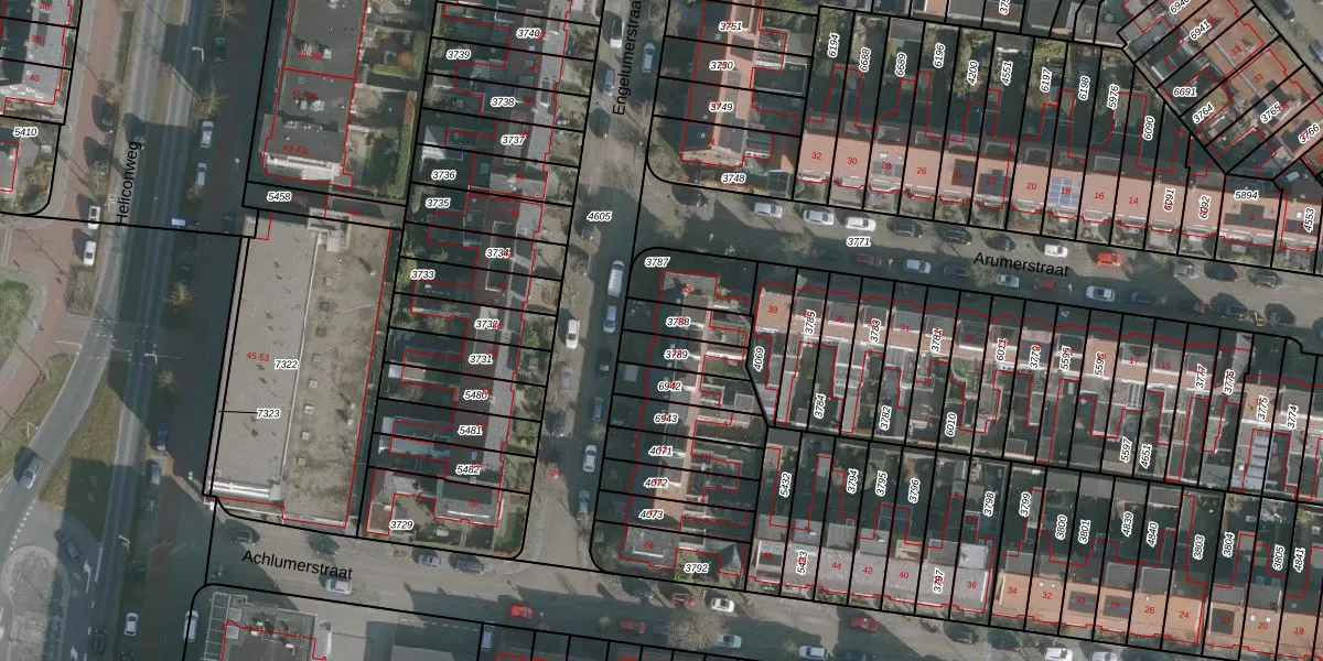 Gebruik de zoekbalk of klik op een perceel voor informatie over de adressen binnen dit perceel.
