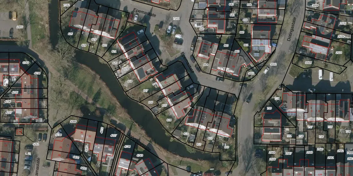 Epemastate 13 is gelegen op kadastraal perceel LWD00K616. Deze kadastrale aanduiding is uniek en wordt gebruikt door het Kadaster om eigendomsrechten en andere zakelijke rechten vast te leggen. Het perceel maakt onderdeel uit van de kadastrale gemeente Leeuwarden.