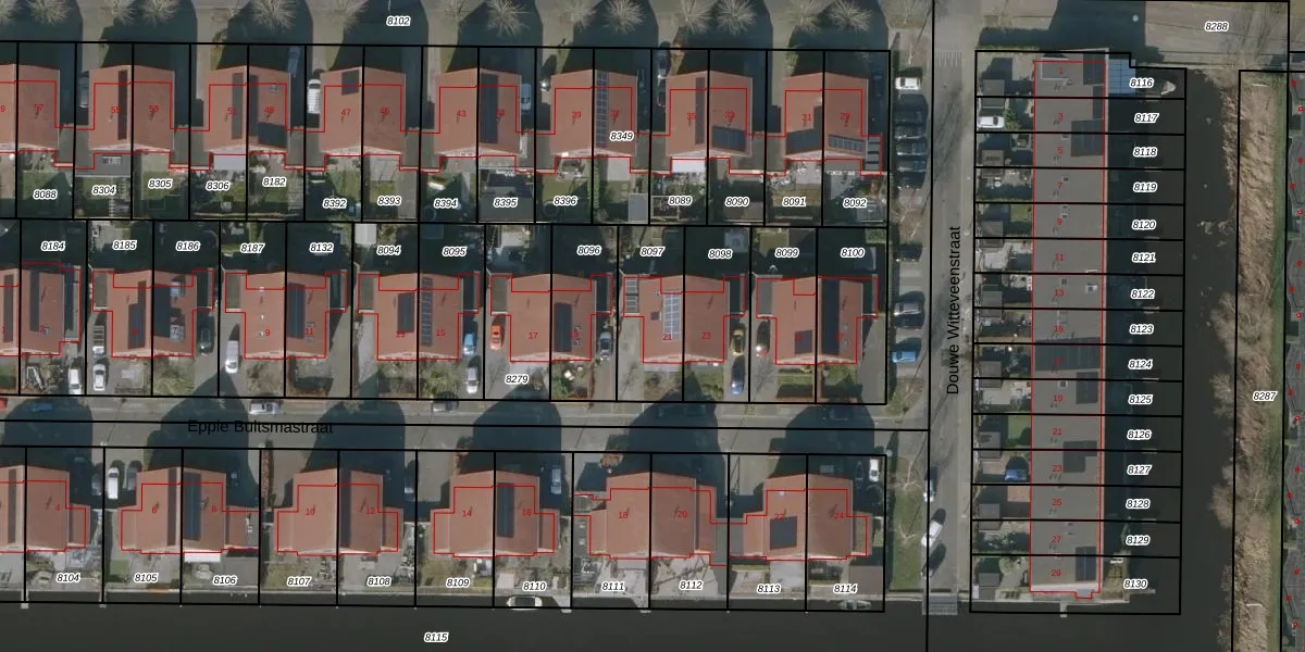 Gebruik de zoekbalk of klik op een perceel voor informatie over de adressen binnen dit perceel.