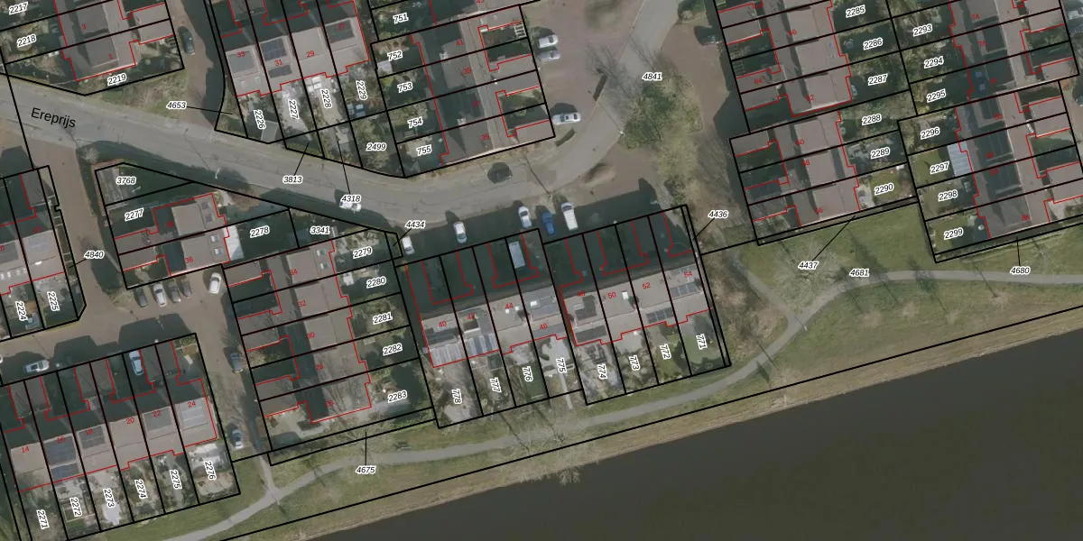 Ereprijs 46 is gelegen op kadastraal perceel HZM00G775. Deze kadastrale aanduiding is uniek en wordt gebruikt door het Kadaster om eigendomsrechten en andere zakelijke rechten vast te leggen. Het perceel maakt onderdeel uit van de kadastrale gemeente Huizum.