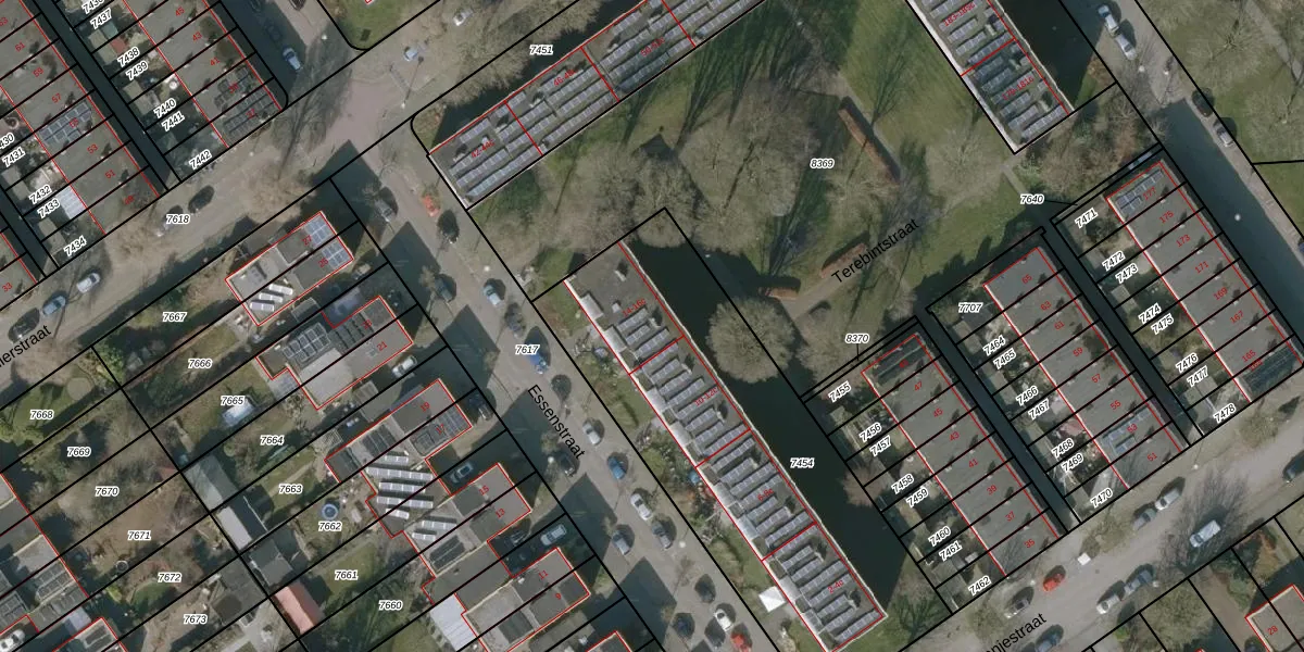 Essenstraat 16-b is gelegen op kadastraal perceel LWD00F7454. Deze kadastrale aanduiding is uniek en wordt gebruikt door het Kadaster om eigendomsrechten en andere zakelijke rechten vast te leggen. Het perceel maakt onderdeel uit van de kadastrale gemeente Leeuwarden.