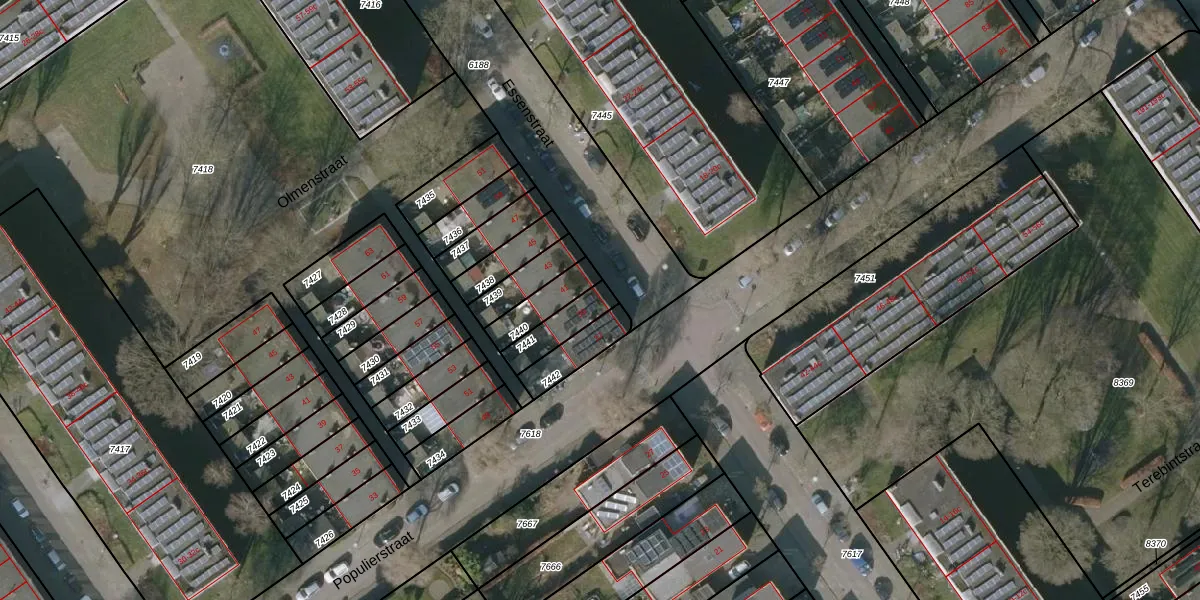 Het perceel waarop Essenstraat 39 staat heeft een oppervlakte van 100 m². Dit is een middelgroot perceel. De perceeloppervlakte wordt geregistreerd door het Kadaster. Gedetailleerde informatie over de maten van dit perceel kunt u vinden in het rapport Kadastrale kaart met maatvoering van Essenstraat 39.