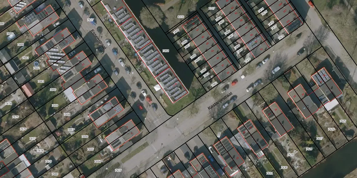 Het perceel waarop Essenstraat 4 staat heeft een oppervlakte van 1914 m². Dit is een zeer groot perceel. De perceeloppervlakte wordt geregistreerd door het Kadaster. Gedetailleerde informatie over de maten van dit perceel kunt u vinden in het rapport Kadastrale kaart met maatvoering van Essenstraat 4.