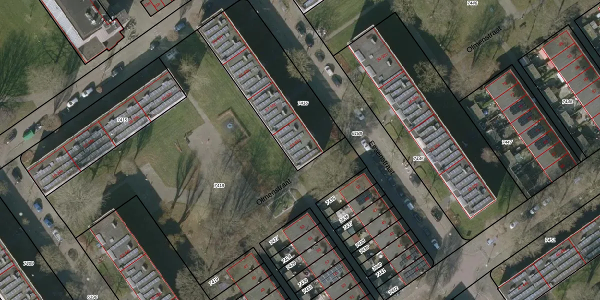 Het perceel waarop Essenstraat 53-c staat heeft een oppervlakte van 1118 m². Dit is een zeer groot perceel. De perceeloppervlakte wordt geregistreerd door het Kadaster. Gedetailleerde informatie over de maten van dit perceel kunt u vinden in het rapport Kadastrale kaart met maatvoering van Essenstraat 53-c.