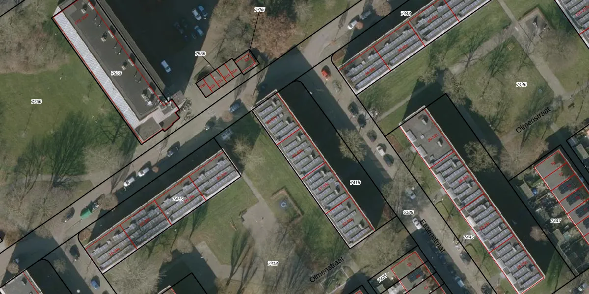 Het perceel waarop Essenstraat 63-b staat heeft een oppervlakte van 1118 m². Dit is een zeer groot perceel. De perceeloppervlakte wordt geregistreerd door het Kadaster. Gedetailleerde informatie over de maten van dit perceel kunt u vinden in het rapport Kadastrale kaart met maatvoering van Essenstraat 63-b.