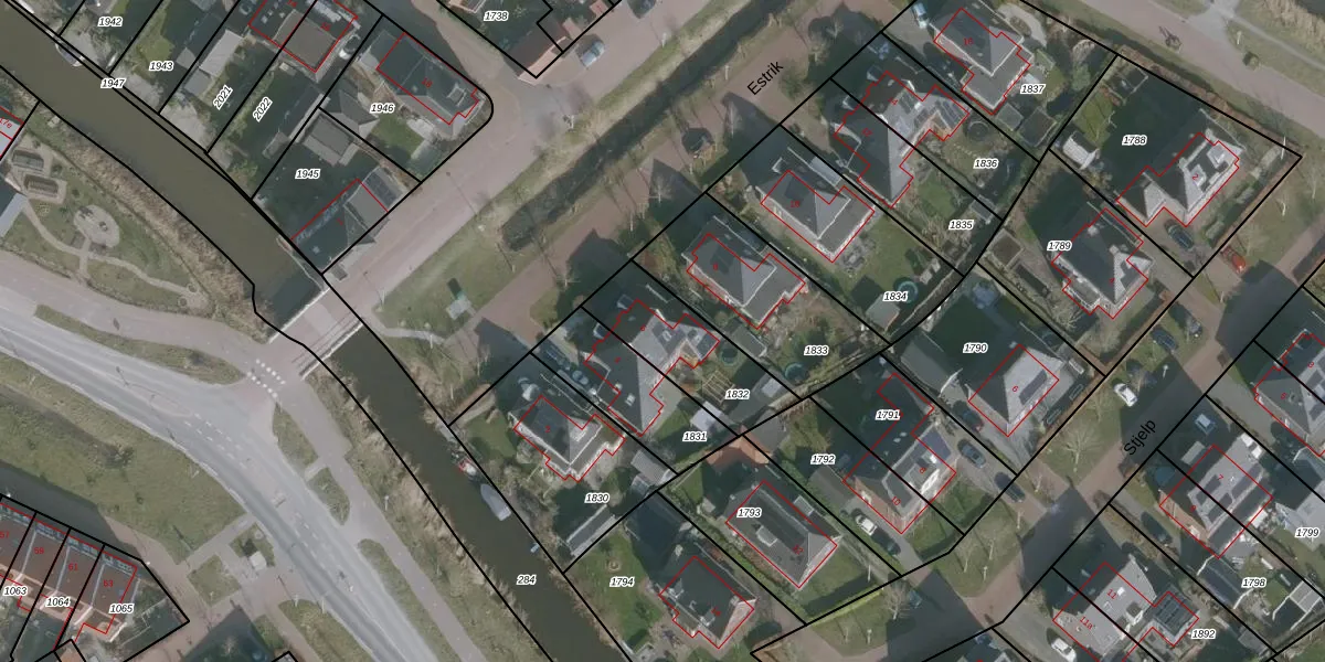 Het perceel waarop Estrik 6 staat heeft een oppervlakte van 331 m². Dit is een groot perceel. De perceeloppervlakte wordt geregistreerd door het Kadaster. Gedetailleerde informatie over de maten van dit perceel kunt u vinden in het rapport Kadastrale kaart met maatvoering van Estrik 6.