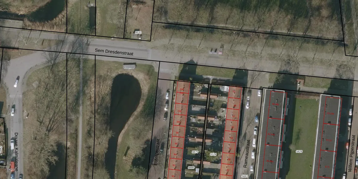 Euterpestraat 106 is gelegen op kadastraal perceel LWD00D8886. Deze kadastrale aanduiding is uniek en wordt gebruikt door het Kadaster om eigendomsrechten en andere zakelijke rechten vast te leggen. Het perceel maakt onderdeel uit van de kadastrale gemeente Leeuwarden.