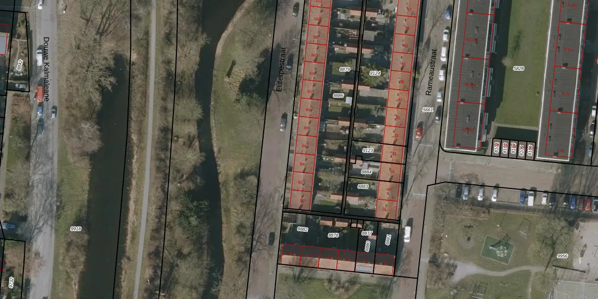 Het perceel waarop Euterpestraat 86 staat heeft een oppervlakte van 1662 m². Dit is een zeer groot perceel. De perceeloppervlakte wordt geregistreerd door het Kadaster. Gedetailleerde informatie over de maten van dit perceel kunt u vinden in het rapport Kadastrale kaart met maatvoering van Euterpestraat 86.