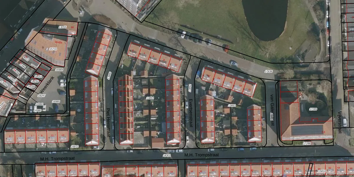 Het perceel waarop het adres ligt is LWD00-G-13891. De afkorting 'LWD00' staat voor kadastrale gemeente Leeuwarden. Het perceel is met 2300 m² relatief groot. Het gemiddelde ligt in de kadastrale gemeente Leeuwarden op 1523,3 m². De grootste perceeloppervlakte in de kadastrale gemeente is 1,54 km². De kleinste oppervlakte bedraagt 0 m². Er zijn 17 adressen aanwezig op het perceel. In de Basisregistratie Kadaster (BRK) werden de grenzen van het perceel geregistreerd op 17-04-2003.