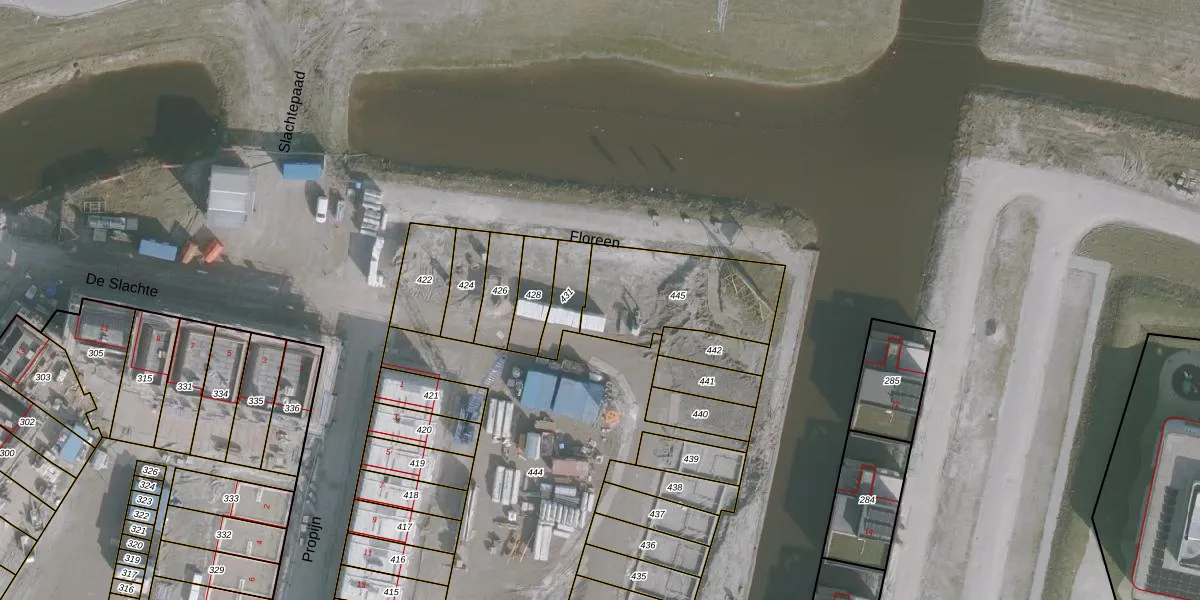 Het perceel waarop Floreen 81 staat heeft een oppervlakte van 443 m². Dit is een groot perceel. De perceeloppervlakte wordt geregistreerd door het Kadaster. Gedetailleerde informatie over de maten van dit perceel kunt u vinden in het rapport Kadastrale kaart met maatvoering van Floreen 81.