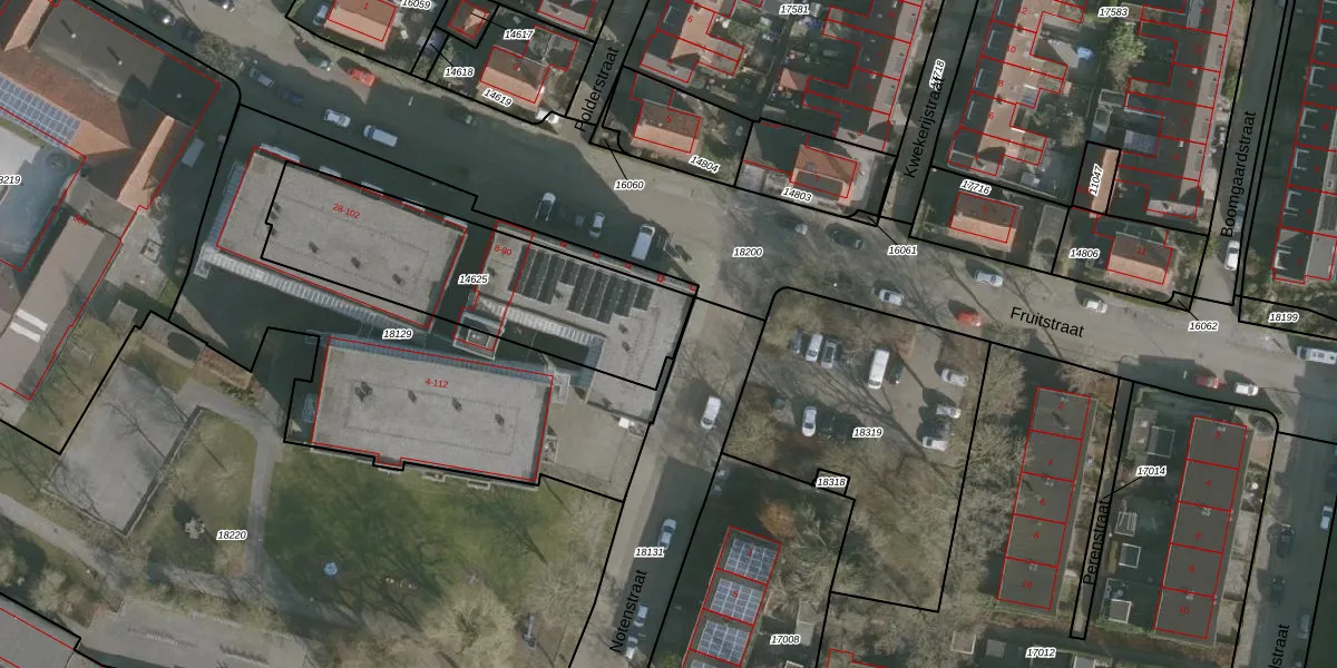 Het perceel waarop Fruitstraat 12 staat heeft een oppervlakte van 965 m². Dit is een groot perceel. De perceeloppervlakte wordt geregistreerd door het Kadaster. Gedetailleerde informatie over de maten van dit perceel kunt u vinden in het rapport Kadastrale kaart met maatvoering van Fruitstraat 12.