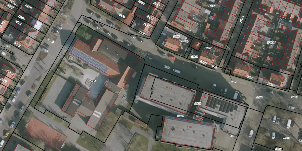 Fruitstraat 28 is gelegen op kadastraal perceel LWD00G18129. Deze kadastrale aanduiding is uniek en wordt gebruikt door het Kadaster om eigendomsrechten en andere zakelijke rechten vast te leggen. Het perceel maakt onderdeel uit van de kadastrale gemeente Leeuwarden.