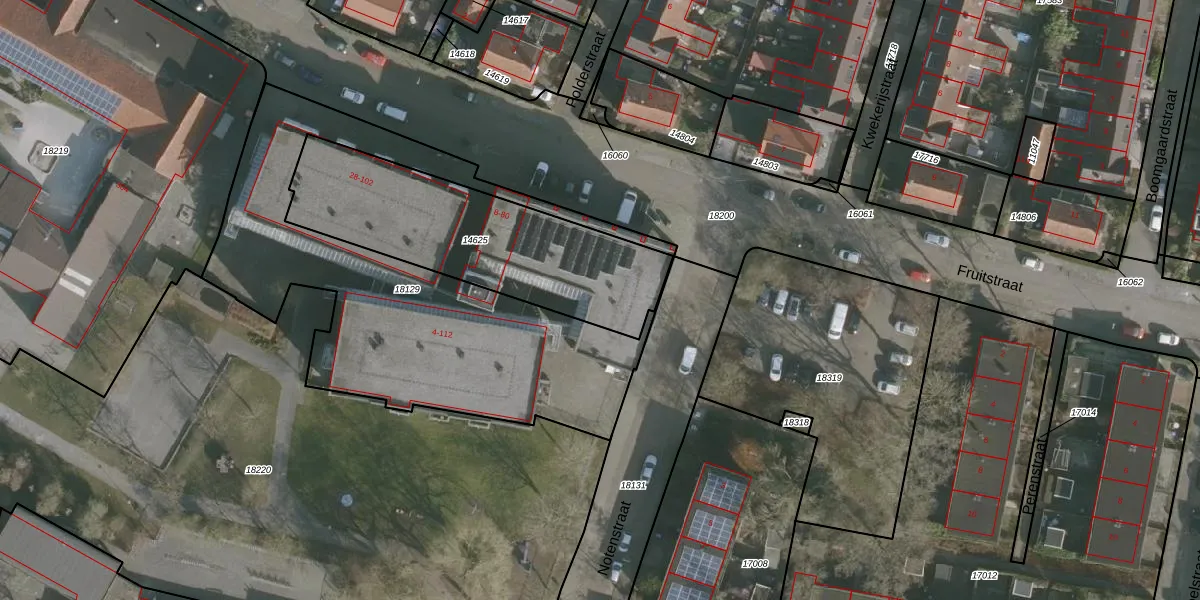 Het perceel waarop Fruitstraat 78 staat heeft een oppervlakte van 965 m². Dit is een groot perceel. De perceeloppervlakte wordt geregistreerd door het Kadaster. Gedetailleerde informatie over de maten van dit perceel kunt u vinden in het rapport Kadastrale kaart met maatvoering van Fruitstraat 78.