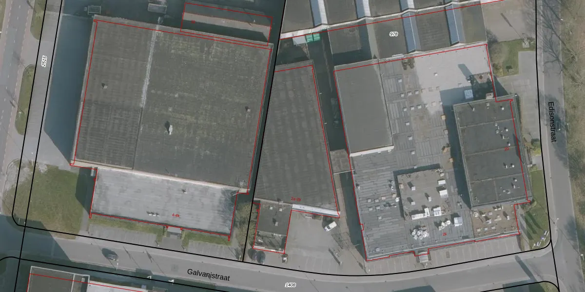 Het perceel waarop Galvanistraat 2-a staat heeft een oppervlakte van 1,0 ha. Dit is een zeer groot perceel. De perceeloppervlakte wordt geregistreerd door het Kadaster. Gedetailleerde informatie over de maten van dit perceel kunt u vinden in het rapport Kadastrale kaart met maatvoering van Galvanistraat 2-a.