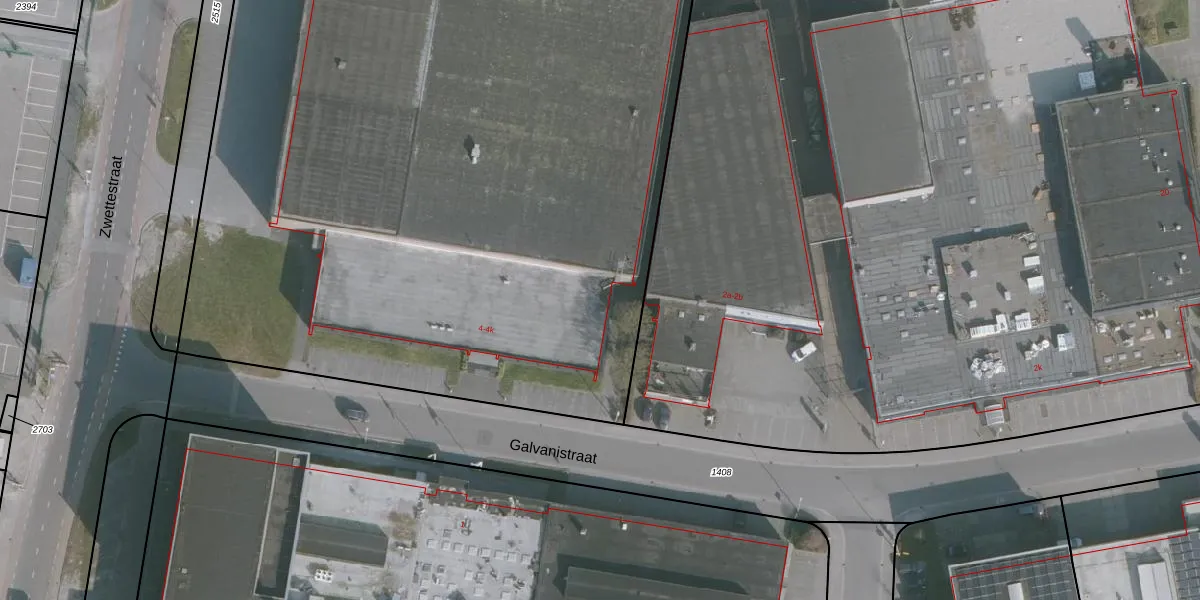 Het perceel waarop Galvanistraat 4-k staat heeft een oppervlakte van 7129 m². Dit is een zeer groot perceel. De perceeloppervlakte wordt geregistreerd door het Kadaster. Gedetailleerde informatie over de maten van dit perceel kunt u vinden in het rapport Kadastrale kaart met maatvoering van Galvanistraat 4-k.
