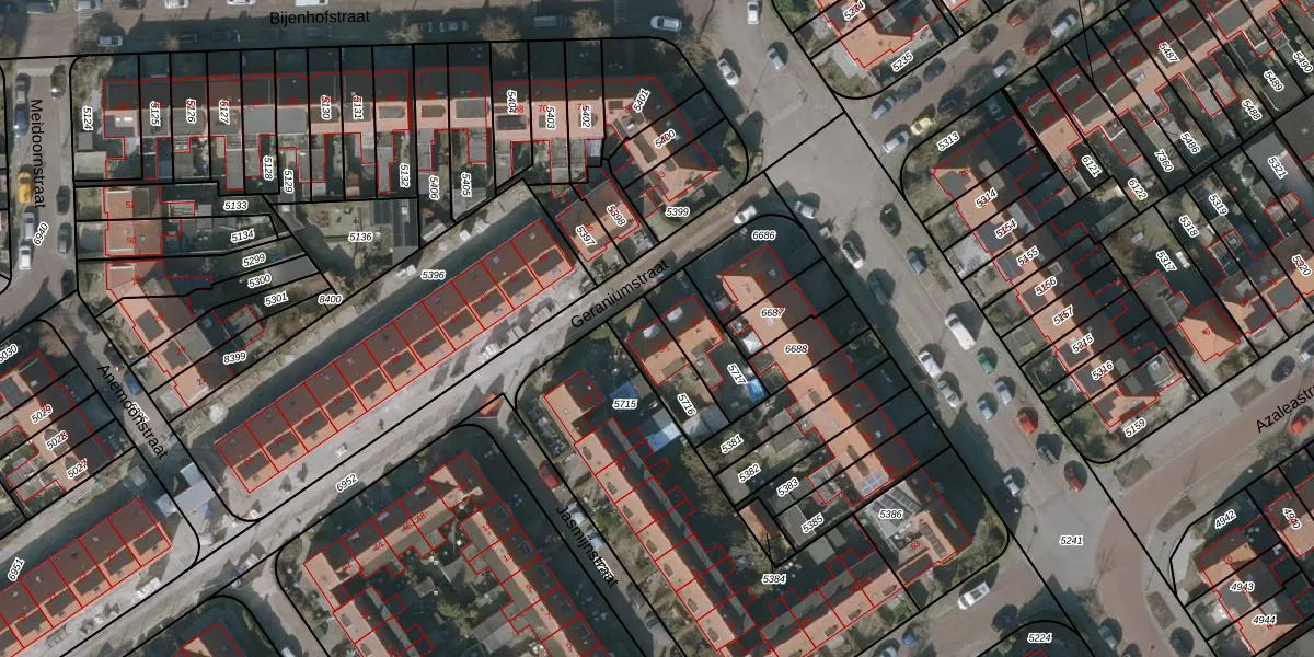 Geraniumstraat 54 is gelegen op kadastraal perceel LWD00F5716. Deze kadastrale aanduiding is uniek en wordt gebruikt door het Kadaster om eigendomsrechten en andere zakelijke rechten vast te leggen. Het perceel maakt onderdeel uit van de kadastrale gemeente Leeuwarden.