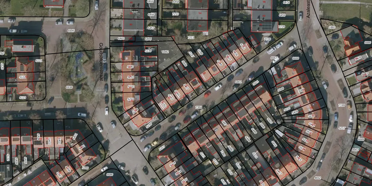 Gebruik de zoekbalk of klik op een perceel voor informatie over de adressen binnen dit perceel.