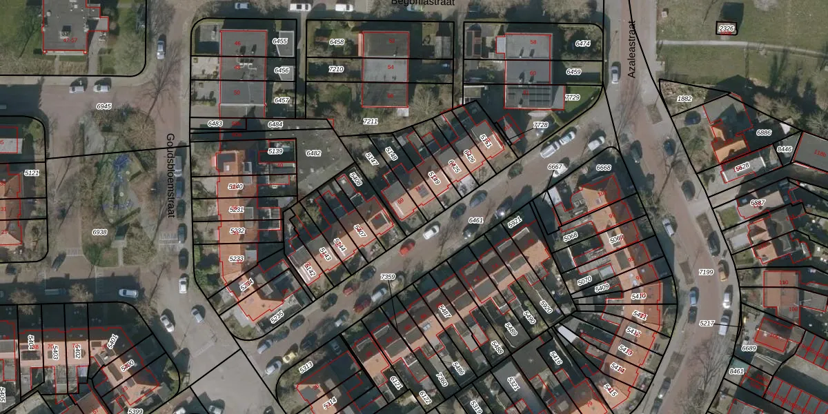 Gebruik de zoekbalk of klik op een perceel voor informatie over de adressen binnen dit perceel.