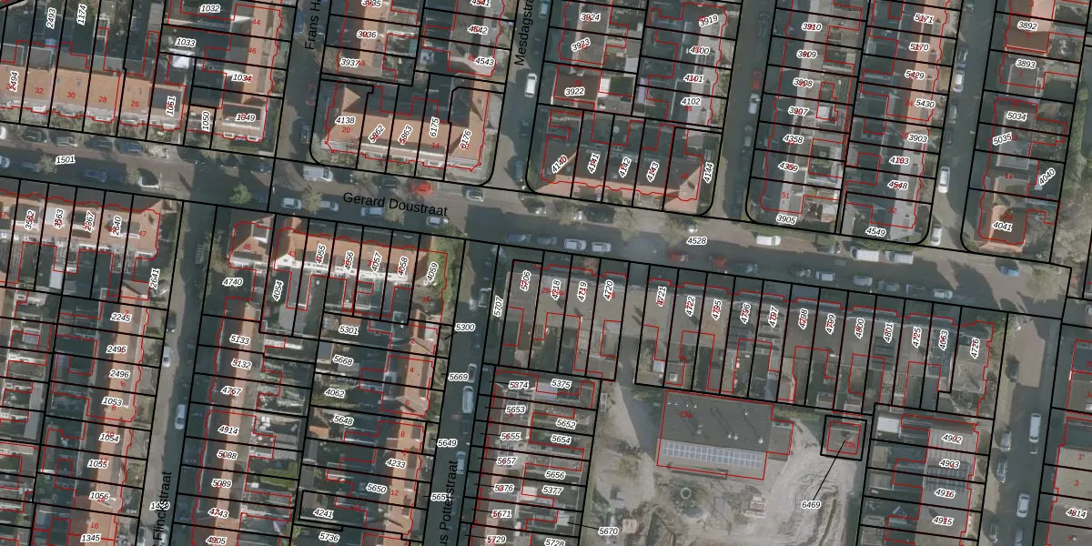 Gerard Doustraat 29 is gelegen op kadastraal perceel HZM00B4718. Deze kadastrale aanduiding is uniek en wordt gebruikt door het Kadaster om eigendomsrechten en andere zakelijke rechten vast te leggen. Het perceel maakt onderdeel uit van de kadastrale gemeente Huizum.