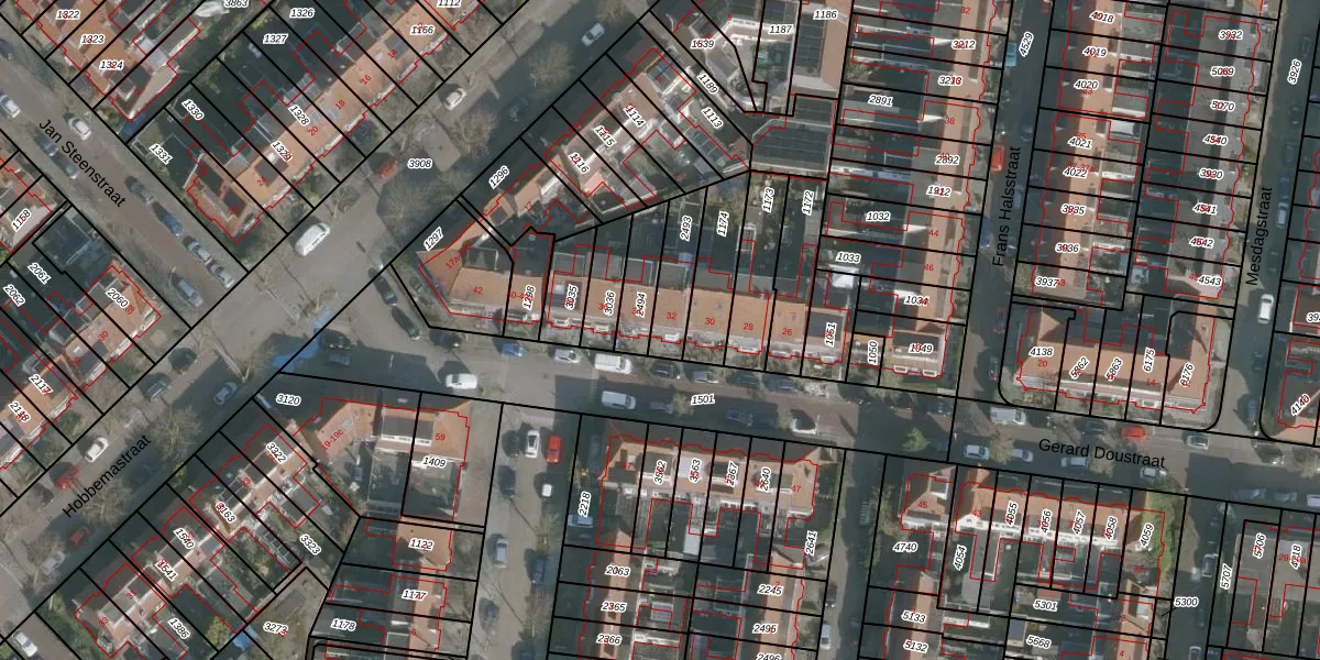Het perceel waarop Gerard Doustraat 32 staat heeft een oppervlakte van 134 m². Dit is een middelgroot perceel. De perceeloppervlakte wordt geregistreerd door het Kadaster. Gedetailleerde informatie over de maten van dit perceel kunt u vinden in het rapport Kadastrale kaart met maatvoering van Gerard Doustraat 32.