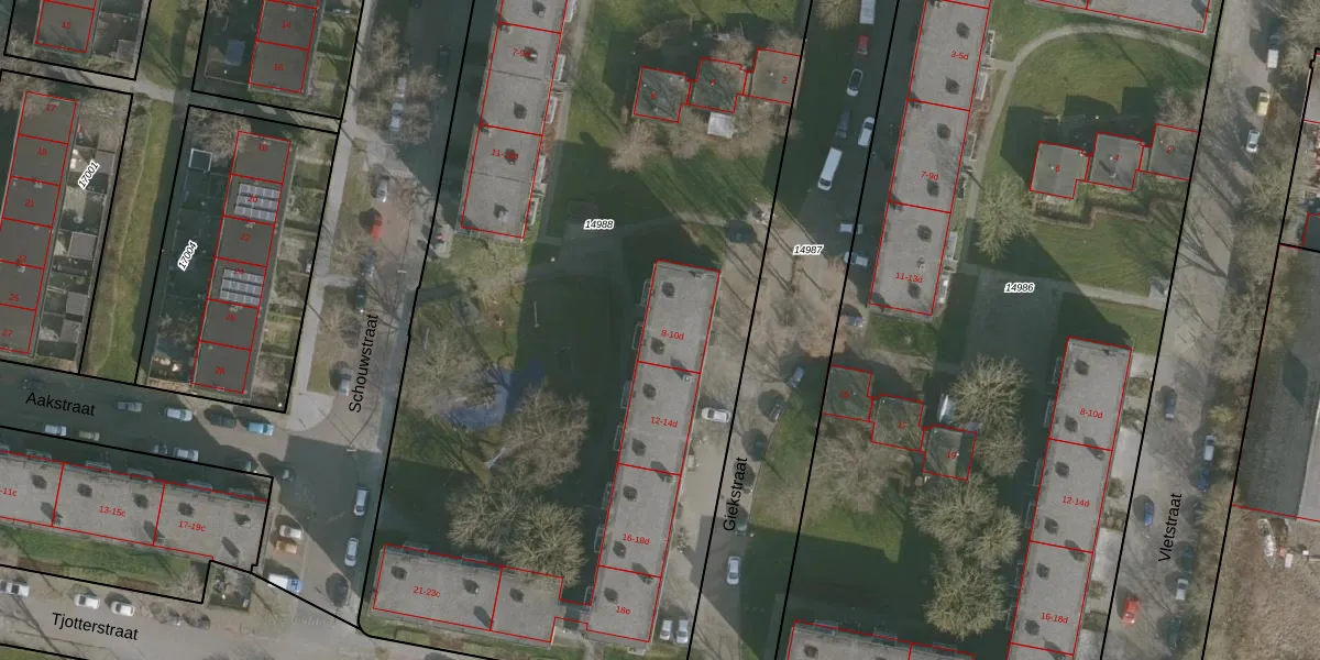 Giekstraat 10-b is gelegen op kadastraal perceel LWD00G14988. Deze kadastrale aanduiding is uniek en wordt gebruikt door het Kadaster om eigendomsrechten en andere zakelijke rechten vast te leggen. Het perceel maakt onderdeel uit van de kadastrale gemeente Leeuwarden.