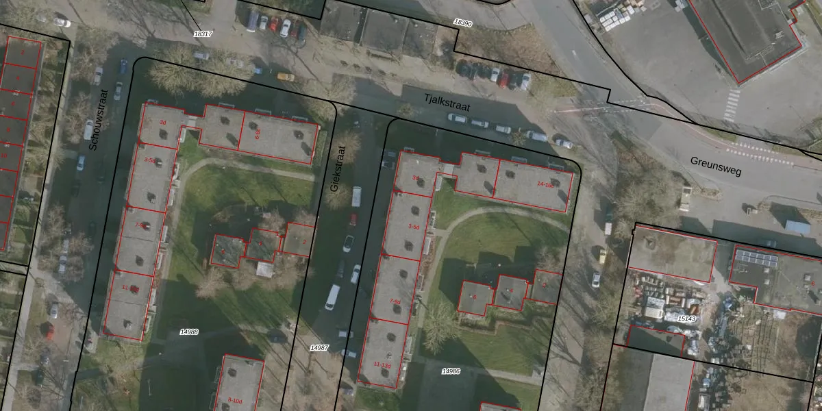 Giekstraat 3-b is gelegen op kadastraal perceel LWD00G14986. Deze kadastrale aanduiding is uniek en wordt gebruikt door het Kadaster om eigendomsrechten en andere zakelijke rechten vast te leggen. Het perceel maakt onderdeel uit van de kadastrale gemeente Leeuwarden.