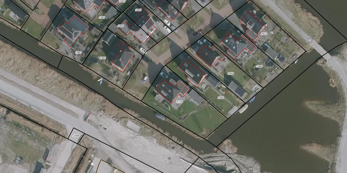 Het perceel waarop Golle 9 staat heeft een oppervlakte van 965 m². Dit is een groot perceel. De perceeloppervlakte wordt geregistreerd door het Kadaster. Gedetailleerde informatie over de maten van dit perceel kunt u vinden in het rapport Kadastrale kaart met maatvoering van Golle 9.