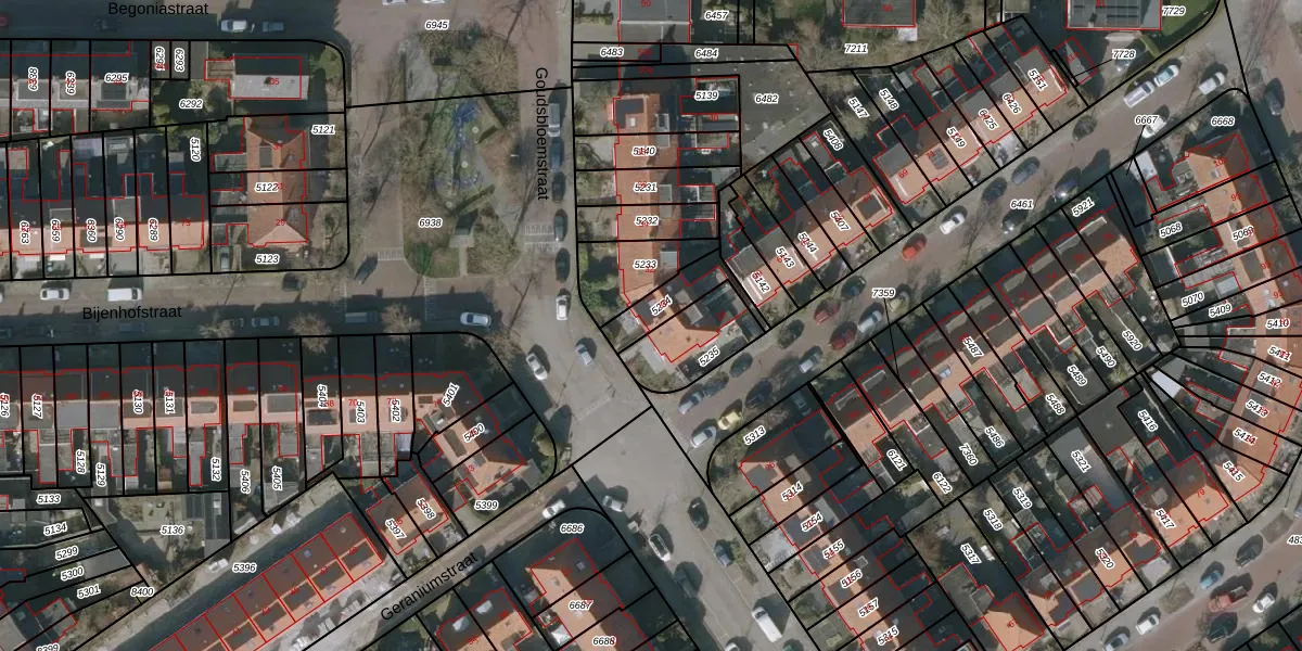 Gebruik de zoekbalk of klik op een perceel voor informatie over de adressen binnen dit perceel.