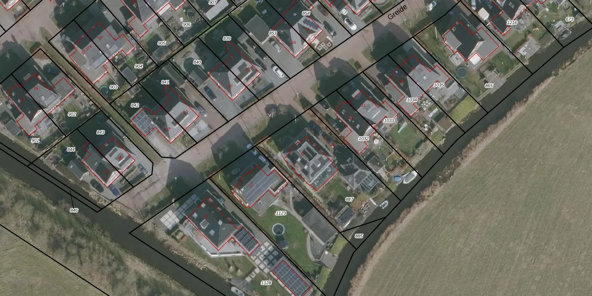 Het perceel waarop Greide 15 staat heeft een oppervlakte van 965 m². Dit is een groot perceel. De perceeloppervlakte wordt geregistreerd door het Kadaster. Gedetailleerde informatie over de maten van dit perceel kunt u vinden in het rapport Kadastrale kaart met maatvoering van Greide 15.