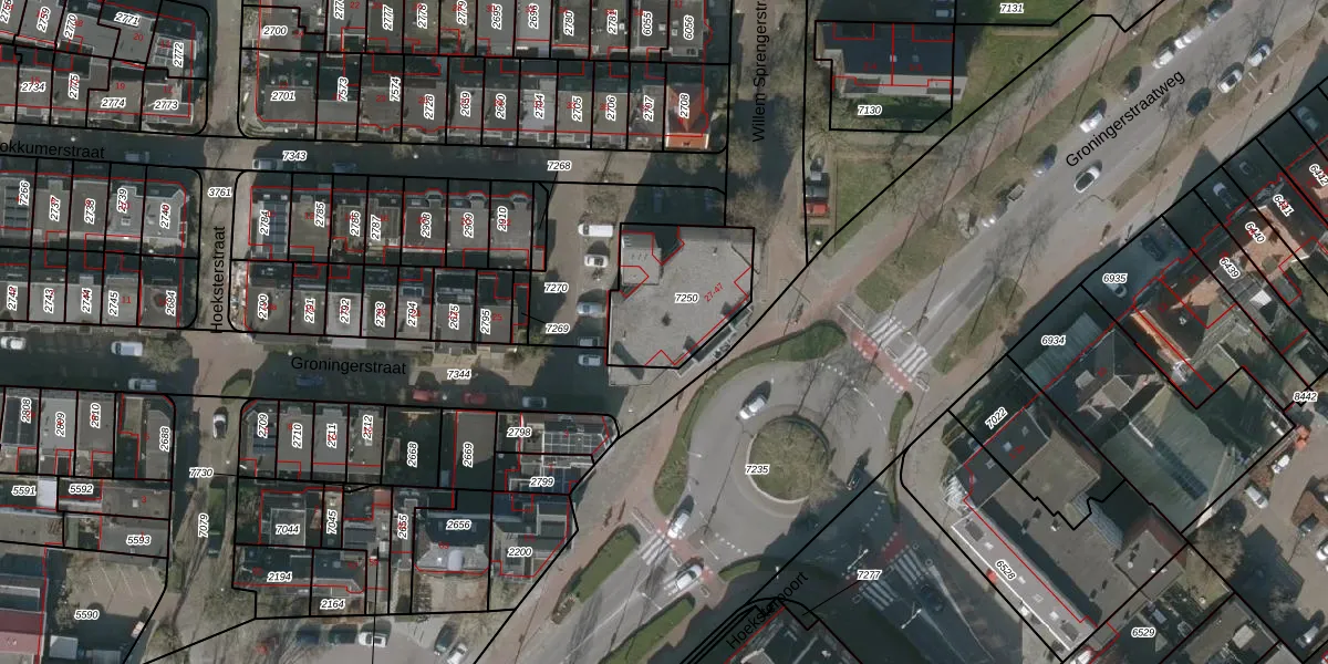 Groningerstraat 43 is gelegen op kadastraal perceel LWD00F7250. Deze kadastrale aanduiding is uniek en wordt gebruikt door het Kadaster om eigendomsrechten en andere zakelijke rechten vast te leggen. Het perceel maakt onderdeel uit van de kadastrale gemeente Leeuwarden.