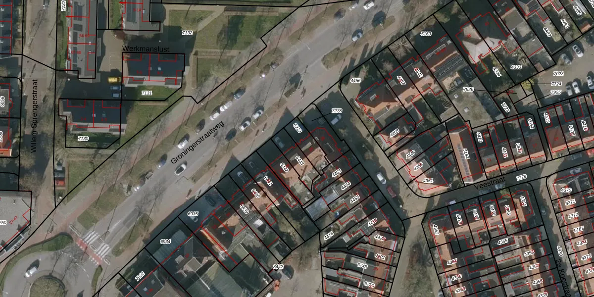 Groningerstraatweg 24 is gelegen op kadastraal perceel LWD00F6443. Deze kadastrale aanduiding is uniek en wordt gebruikt door het Kadaster om eigendomsrechten en andere zakelijke rechten vast te leggen. Het perceel maakt onderdeel uit van de kadastrale gemeente Leeuwarden.