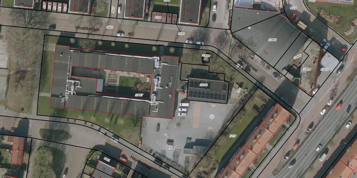 Het perceel waarop Haydnstraat 2-a staat heeft een oppervlakte van 5524 m². Dit is een zeer groot perceel. De perceeloppervlakte wordt geregistreerd door het Kadaster. Gedetailleerde informatie over de maten van dit perceel kunt u vinden in het rapport Kadastrale kaart met maatvoering van Haydnstraat 2-a.