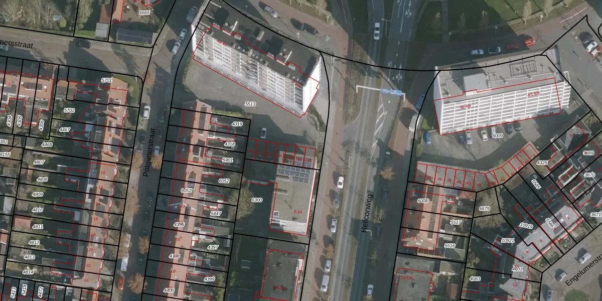 Het perceel waarop Heliconweg 4-w staat heeft een oppervlakte van 1890 m². Dit is een zeer groot perceel. De perceeloppervlakte wordt geregistreerd door het Kadaster. Gedetailleerde informatie over de maten van dit perceel kunt u vinden in het rapport Kadastrale kaart met maatvoering van Heliconweg 4-w.