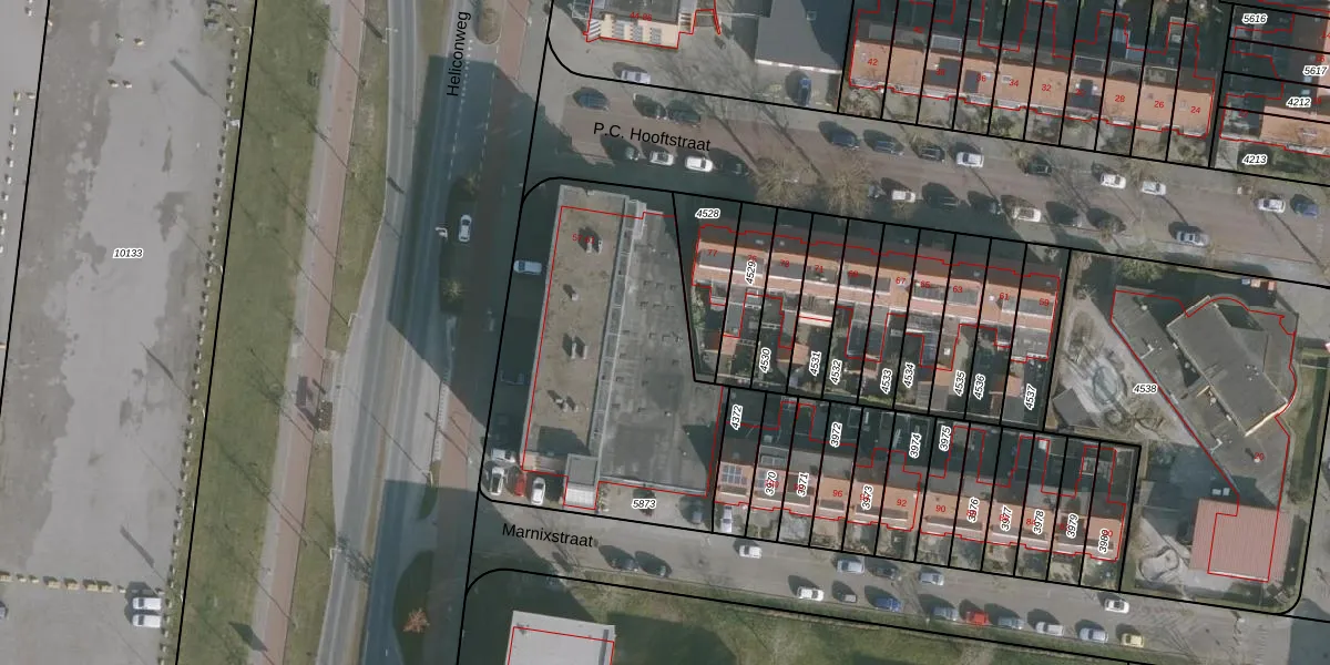 Het perceel waarop Heliconweg 61-5 staat heeft een oppervlakte van 1491 m². Dit is een zeer groot perceel. De perceeloppervlakte wordt geregistreerd door het Kadaster. Gedetailleerde informatie over de maten van dit perceel kunt u vinden in het rapport Kadastrale kaart met maatvoering van Heliconweg 61-5.