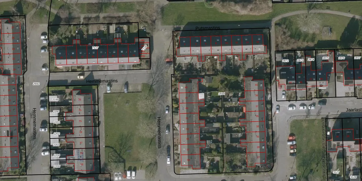 Hemmemastins 45 is gelegen op kadastraal perceel LWD00K2694. Deze kadastrale aanduiding is uniek en wordt gebruikt door het Kadaster om eigendomsrechten en andere zakelijke rechten vast te leggen. Het perceel maakt onderdeel uit van de kadastrale gemeente Leeuwarden.