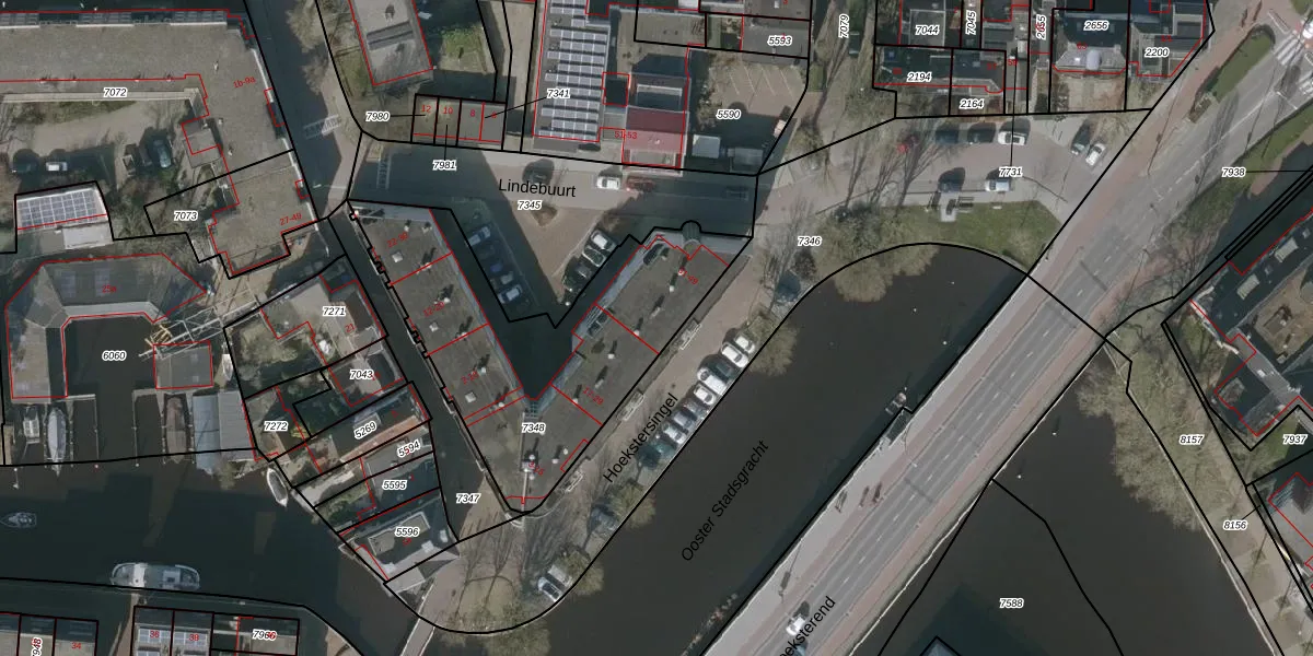 Het adres is gelegen op perceel 7348 in de sectie F en de kadastrale gemeente Leeuwarden. De kadastrale aanduiding is aldus LWD00-F-7348. Het perceel is kleiner dan gemiddeld in Leeuwarden. Het perceel is 1200 m² groot, terwijl het gemiddelde ligt op 1522,65 m². De grootste perceeloppervlakte in de kadastrale gemeente is 1,54 km². De kleinste oppervlakte bedraagt 0 m². Op het perceel zijn 39 adressen aanwezig. De huidige grenzen van het perceel zijn digitaal in de Basisregistratie Kadaster (BRK) geregistreerd op 15-01-1998.