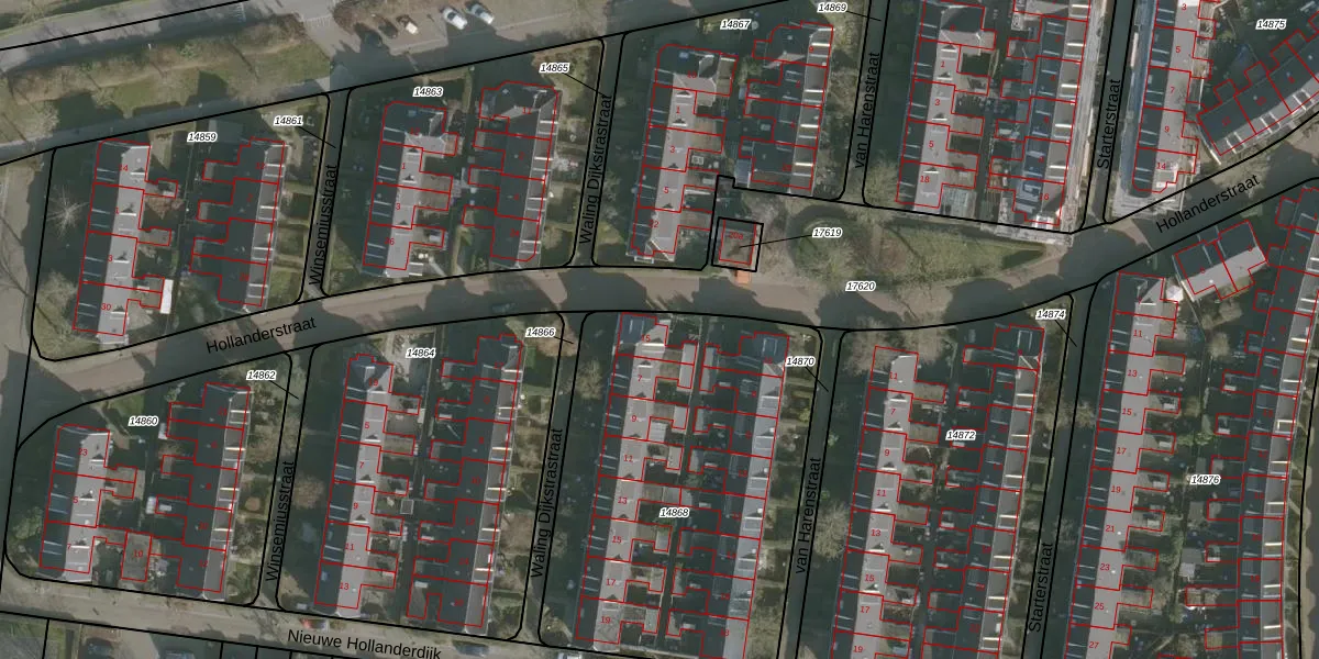 Hollanderstraat 15 is gelegen op kadastraal perceel LWD00G14868. Deze kadastrale aanduiding is uniek en wordt gebruikt door het Kadaster om eigendomsrechten en andere zakelijke rechten vast te leggen. Het perceel maakt onderdeel uit van de kadastrale gemeente Leeuwarden.