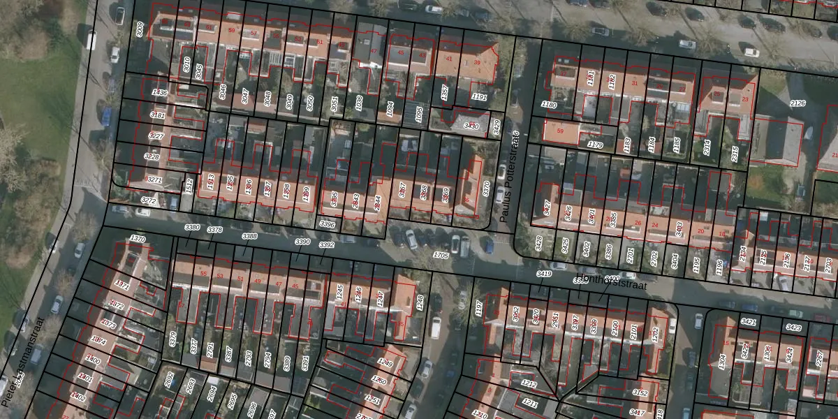 Gebruik de zoekbalk of klik op een perceel voor informatie over de adressen binnen dit perceel.