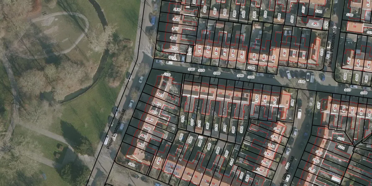 Gebruik de zoekbalk of klik op een perceel voor informatie over de adressen binnen dit perceel.