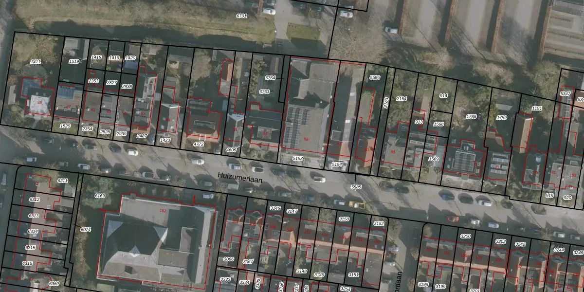 Huizumerlaan 59 is gelegen op kadastraal perceel HZM00B5153. Deze kadastrale aanduiding is uniek en wordt gebruikt door het Kadaster om eigendomsrechten en andere zakelijke rechten vast te leggen. Het perceel maakt onderdeel uit van de kadastrale gemeente Huizum.